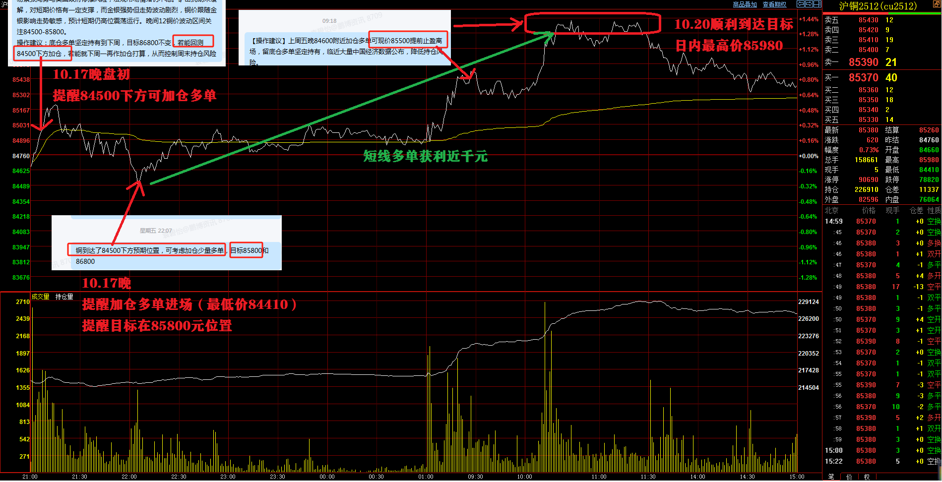 【上周五晚銅加倉多單短線迅速獲利900元】話不多說,直接上圖,完美踩點,10月銅操作累積盈利近7000元