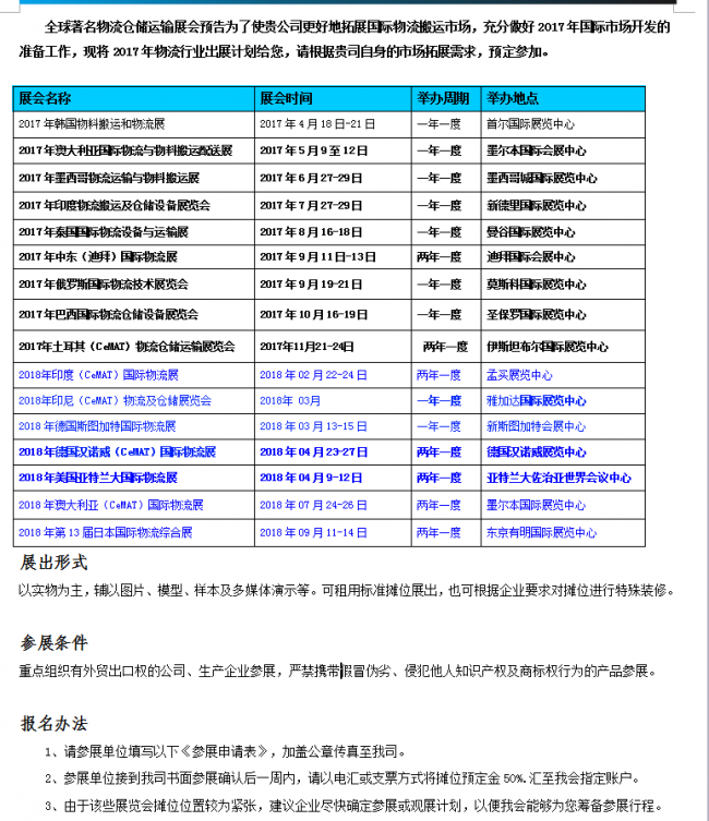 這是我司操作的全球著名物流倉儲(chǔ)運(yùn)輸展會(huì)預(yù)告: